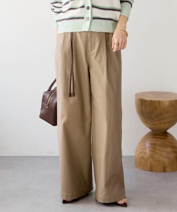 【ノンストレスな穿き心地/細見え/3サイス展開】ジャージータックワイドスラックス