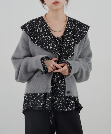ファーウールタイ付きカーディガン