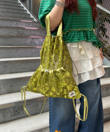 :【TYNNE.】【軽量】2WAY配色メッシュロープ巾着バッグ