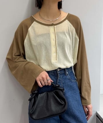 【momoコラボ】【HELLO.SANFRANCISCO/ハローサンフランシスコ】フードリボン付きラグランTee