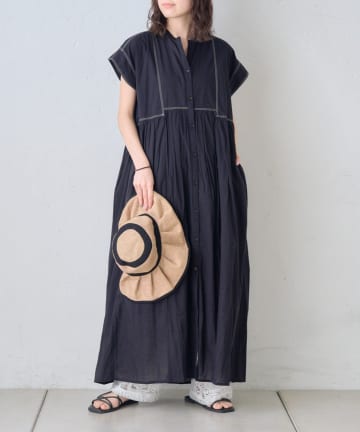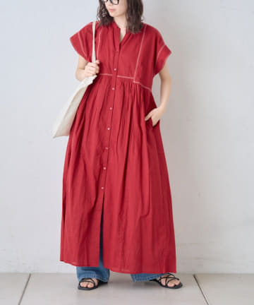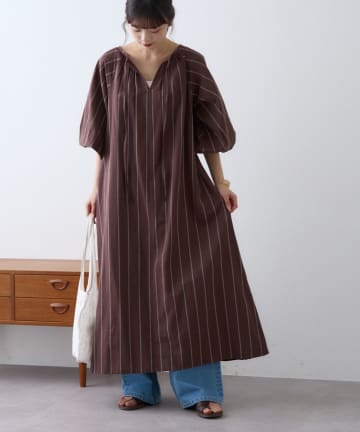 【india】綿麻ボリュームスリーブワンピース