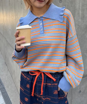 【HELLO.SANFRANCISCO/ハローサンフランシスコ】ビッグカラーボーダーポロニット