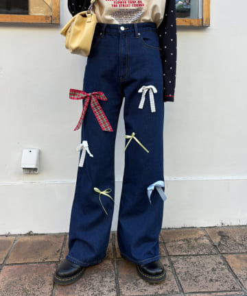 【HELLO.SANFRANCISCO/ハローサンフランシスコ】カラフルリボンフレアデニム
