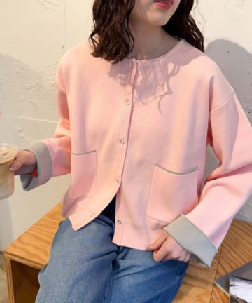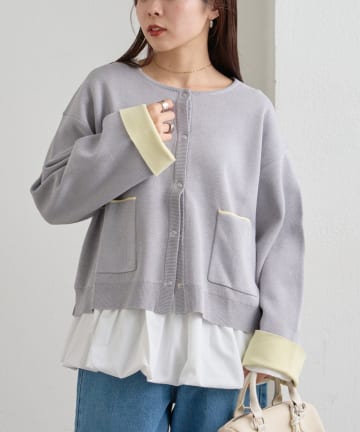 【UVカット/接触冷感】袖配色ニットスナップカーデ