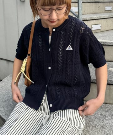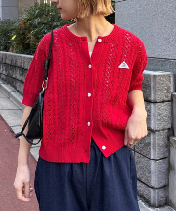 【UNISEX】ダイヤメッシュクルーネックカーディガン