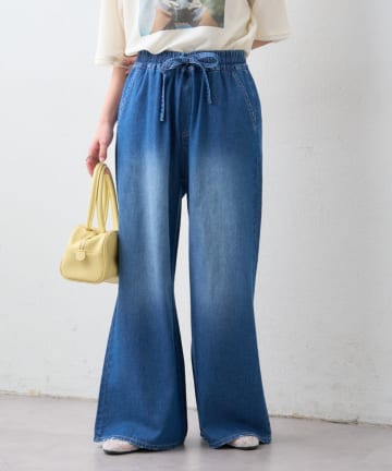 【美脚見え/3サイズ展開】柔らかルーズフレアイージーデニム