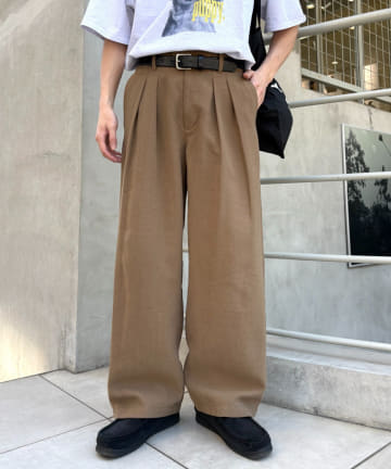 【UNISEX】タックボリュームワイドスラックスパンツ/サイドラインスラックス