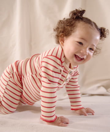 【BABY】【Qinn】ボーダーリブヘンリートップス