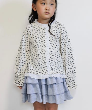 【WEB限定】【KIDS】フラワープリントフリルワッフルスナップカーデ