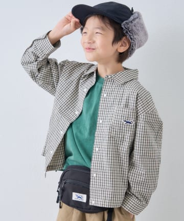 【KIDS】【ジュニアサイズあり】裾断ち切り微起毛チェックフードシャツ