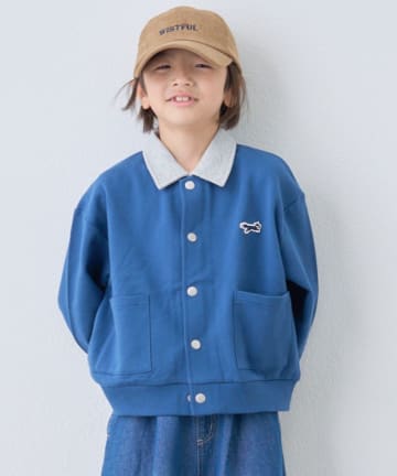 【KIDS】【FOX×TYPY】配色襟付きワンポイント裏毛スナップカーディガン