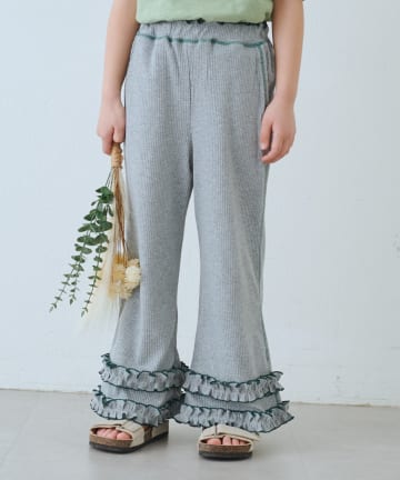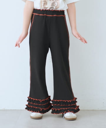【KIDS】裾フリル配色ステッチ微フレアリブパンツ《ジュニアサイズあり》