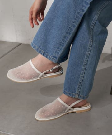 :【S~XLサイズ展開!】ドット柄シアーメッシュフラットサンダル