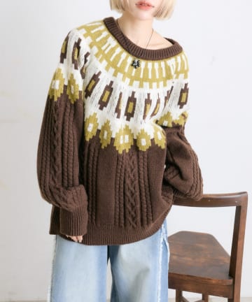 【他と被らない主役ニット♡】配色フラワーモチーフニット