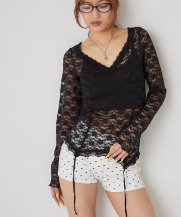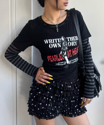 スタッズオフショルL/Sトップス(ドット/ボーダー)
