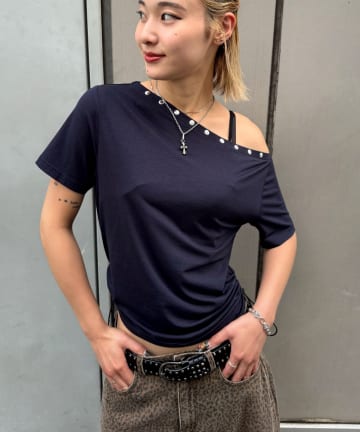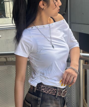 アソート (カモ柄/ヒョウ柄)/ドット柄)スタッズドロストワンショルTEE
