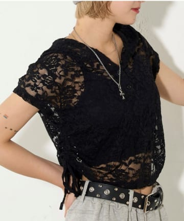【新色レース】シアー/レース ヘンリー半袖パーカー