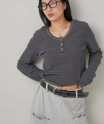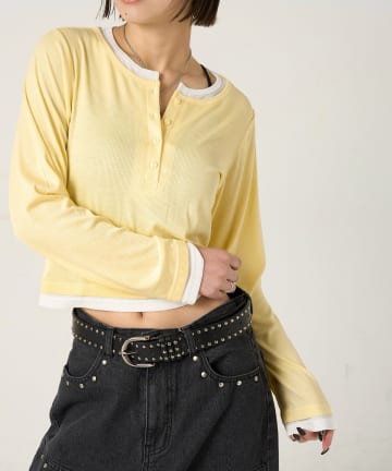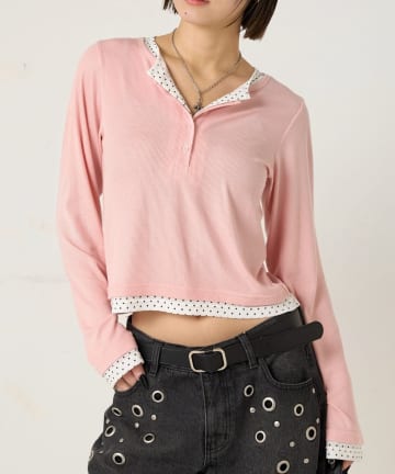 【WEB限定カラーあり/ドット柄】レイヤードヘンリートップス
