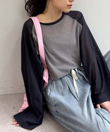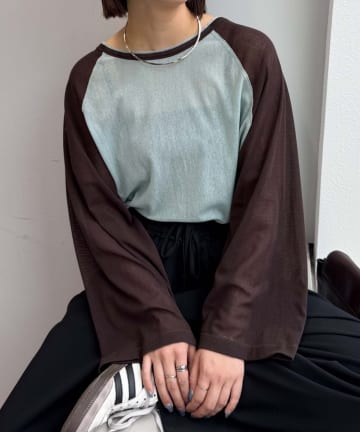 【WEB限定/大人見え】襟配色カラーシアースラブワイドラガーロンTee