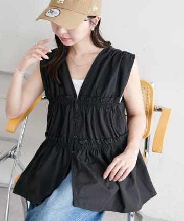 【WEB限定】シャーリングノースリブラウス
