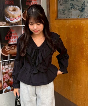 シャーリングリボンブラウス