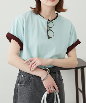【WEB限定/大人見え】襟配色カラーシアースラブワイドラガーロンTee