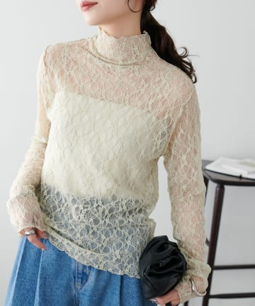 【新色追加/WEB限定】ストレッチレースボトルネックプルオーバー