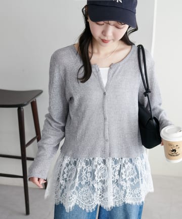 襟付きプリーツカットレースシアーカーデ
