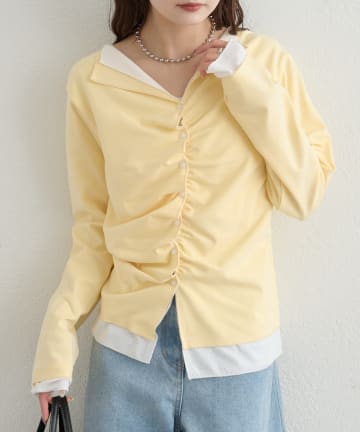 【2種類のレイヤード素材】配色カットソー