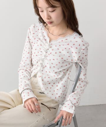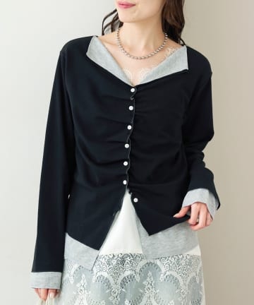 《新色花柄/ドット》【店頭でも人気/追加決定!》ギャザーレースリブカーディガン