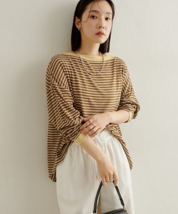 ボーダーオフショルロングTシャツ