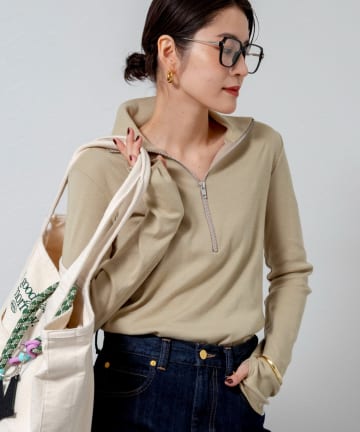 【MAQWEL/マクウェル】COTTON RIBハーフジッププルオーバー