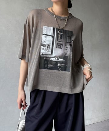 【肌ざわり滑らか】【セットアップ可能】フロッキー肩タックプリントTEE