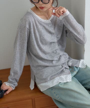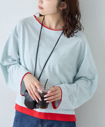 【新色登場/夏も快適】フェイクレイヤードシアースラブ刺繍オーバーTee