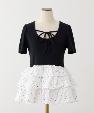 リボン付き裾フリルトップス