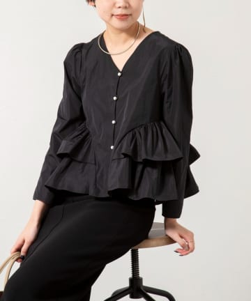《セットアップ対応》ウォッシャブルウール調2WAYフリルブラウス