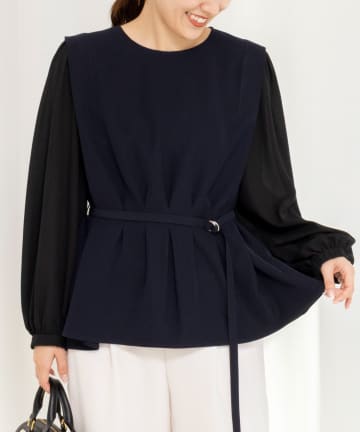 ウォッシャブルチュールレイヤード2WAYブラウス