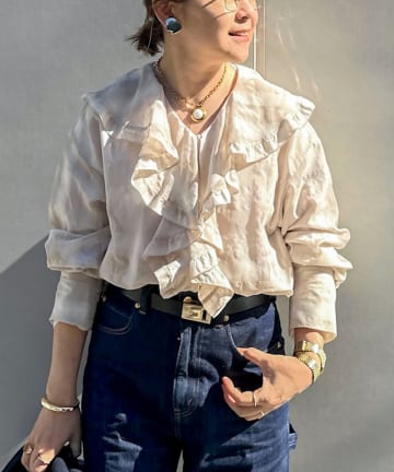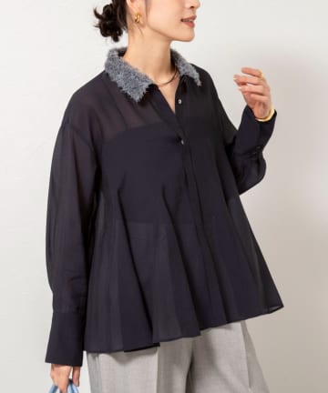 ウォッシャブルシアーコットンフリル襟ブラウス