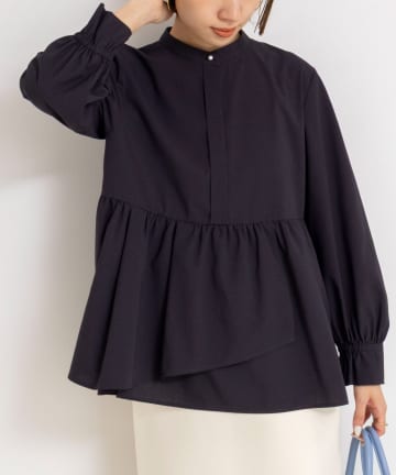 《セットアップ対応》ウォッシャブル衿プリーツペプラムブラウス