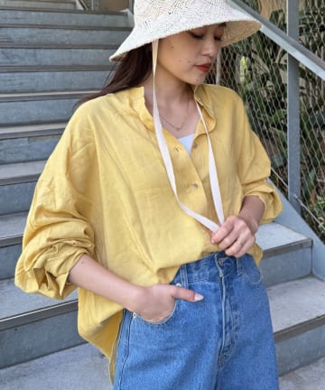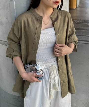 ≪26SS展示会アイテム≫【しわになりにくい】ボリュームスリーブバンドカラーシャツ
