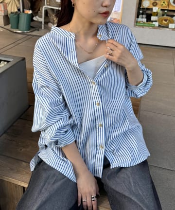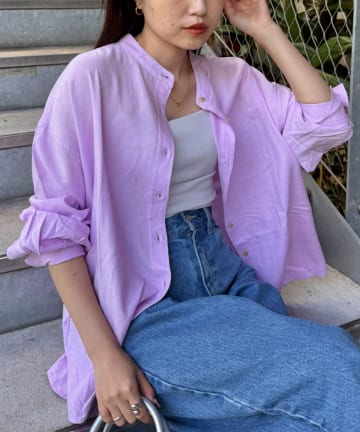 【累計販売数1万枚突破/程よい透け感】シアーバンドカラーシャツ