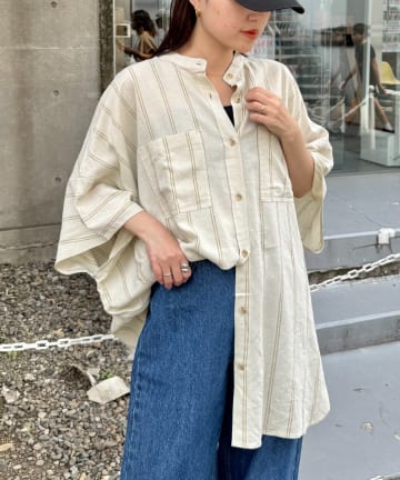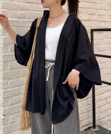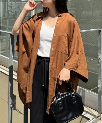 【夏の体型カバー】リネンレーヨンドルマンシャツ