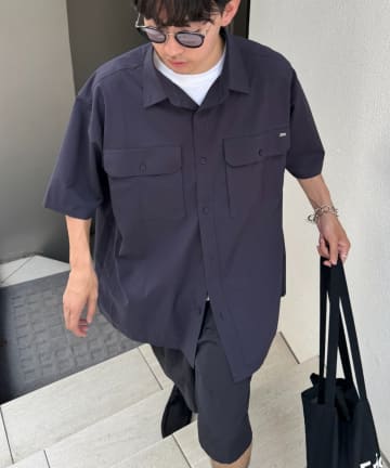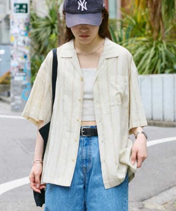 【ユニセックスで着れる】リネンレーヨンオープンカラー半袖シャツ