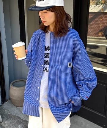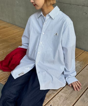 【PATTIPATTI】ユニセックス/ビックシルエットロゴ刺繍チェックシャツ