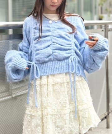【新色ブラウン・ピンク登場!12月26日予約開始♪】【予約人気アイテムNO.1】配色メロウケーブルリボンカーデ