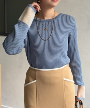 袖先シアーリブニット