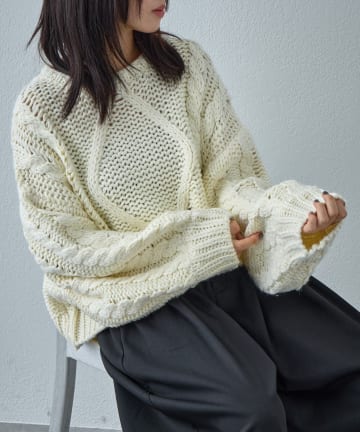 【U.S.POLO ASSN.】 ケーブルニットプルオーバー
