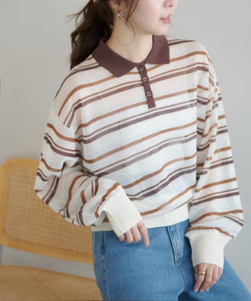 【WEB限定】袖配色スカラップポコポコフレンチニット