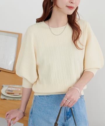 【WEB限定】ランダムリブボリュームスリーブ半袖ニット