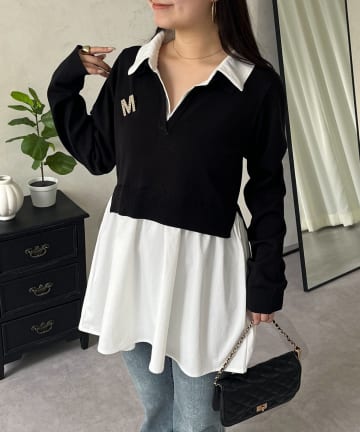 《スタイルアップ♪/体型カバー/8色展開》【WEB限定】リブ切替ペプラムプルオーバー
